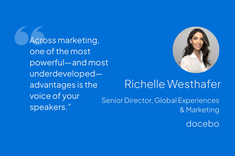 At Docebo, the marketing team recognized something deeper: their speakers—internal SMEs, customers, partners, and trusted industry voices—were one of their most underutilized marketing assets.