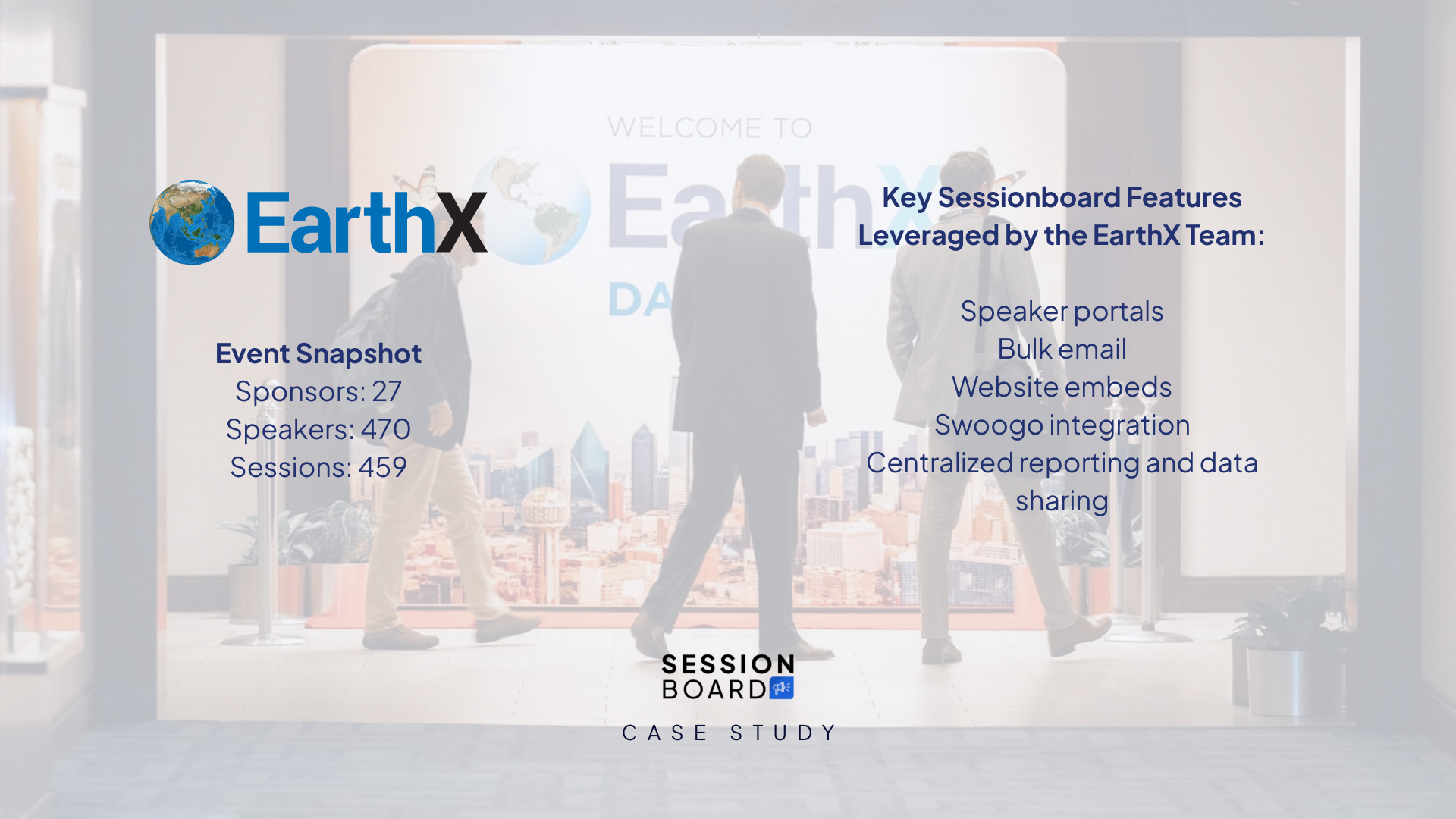 Sessionboard became EarthX’s operational center. The team used it every day to onboard speakers, track task completion, set automated reminders, manage outreach, and keep key stakeholders informed with weekly reports. The tools Sessionboard provided were key to helping keep us on track.