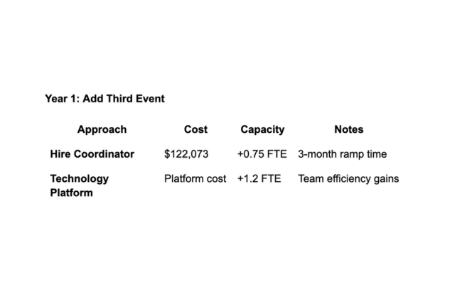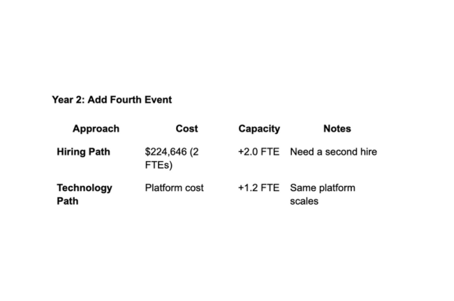Scenario: Your 2-person event team needs more capacity to scale from 2 to 4 events annually.