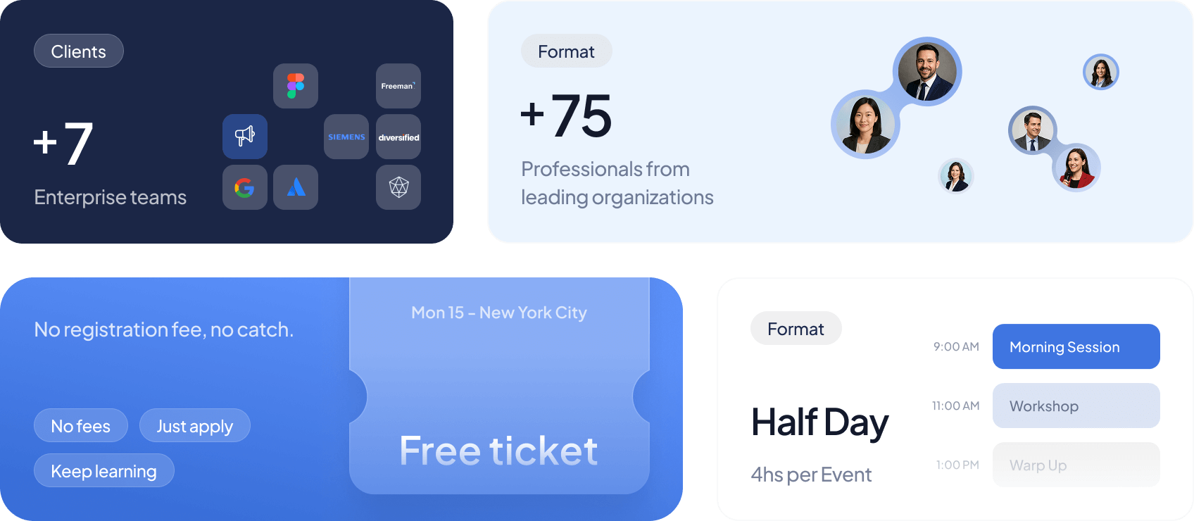 Over 75 professionals from leading organizations have already leveled up. Discover our intensive half-day format and apply for your free ticket to our next session.
