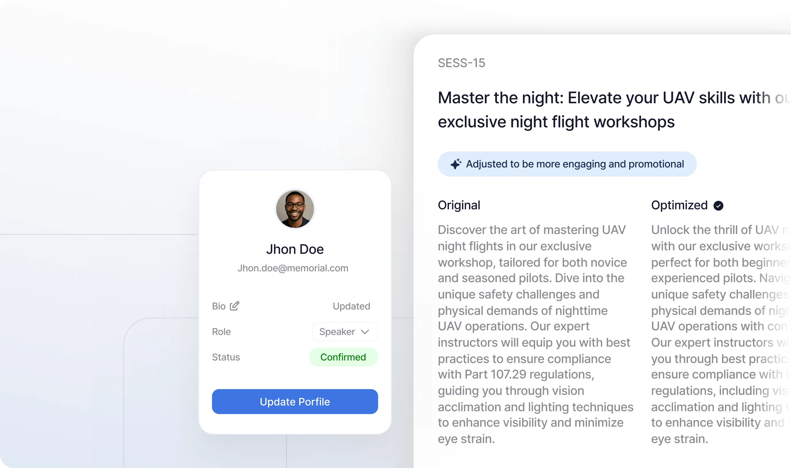 Use AI to clean up bios, abstracts, and titles across all sessions for a consistent look and feel.
