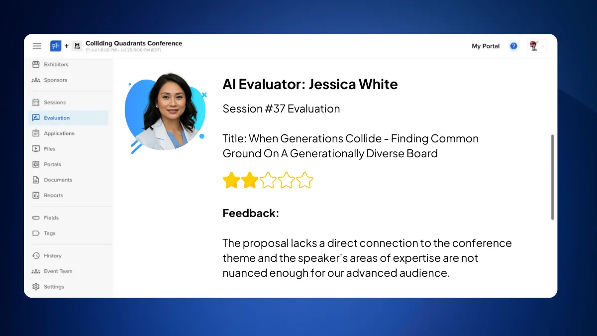 Artificial Intelligence makes it fast and easy to evaluate session submissions, support your evaluations team and deliver the highest quality event program.